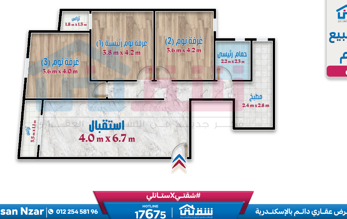 مطلات مفتوحةشقة للبيع 135م لوارن