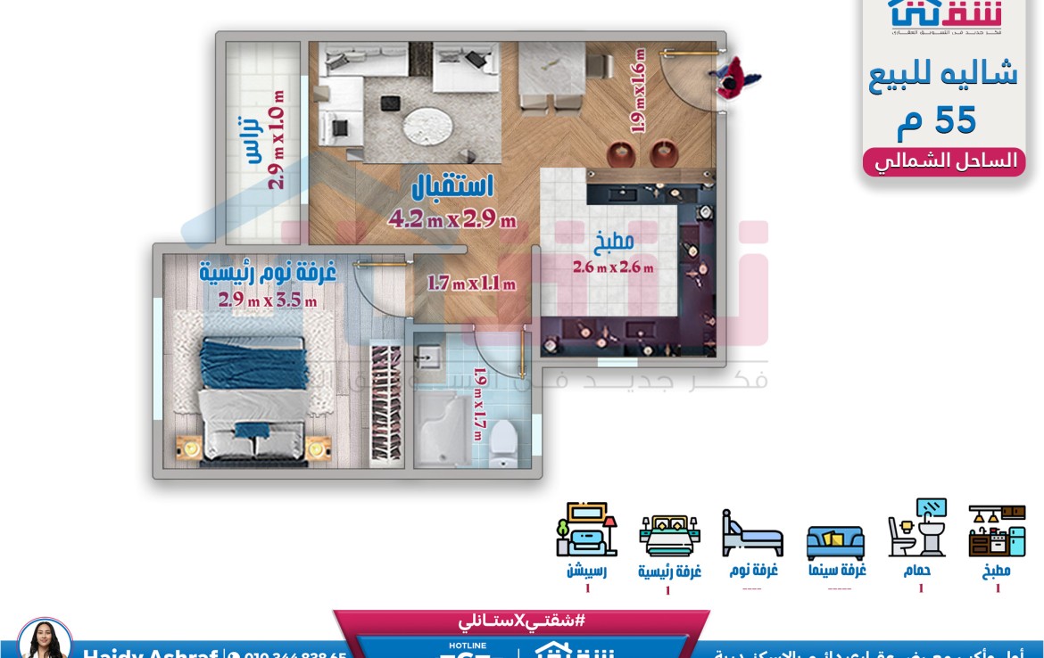 » لمزيد من التفاصيل وتحديد ميعاد للمعاينة أ/ هايدى اشرف: 01034483865 أو📱تواصل واتساب: https://wa.me/201034483865