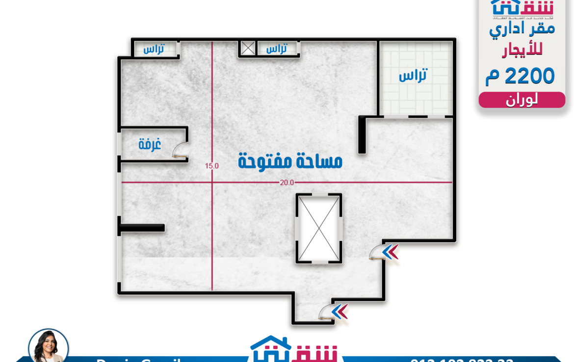 مقر إداري للإيجار 2200 م لوران (شارع رئيسي – واجهة إعلانية على 4 شوارع)