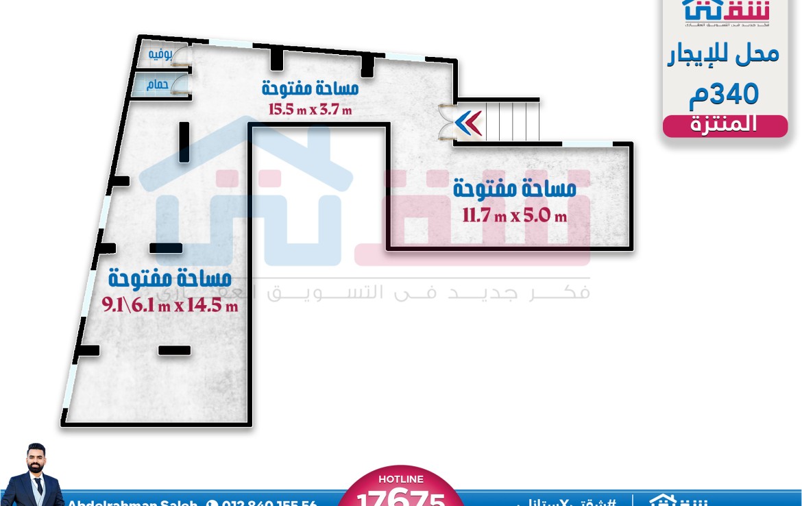 مطلات مفتوحةمحل للإيجار 340م المنتزة – ش الملك
