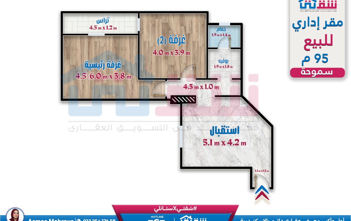 مقر إداري 95م سموحة – متفرع من ش فوزى معاذ