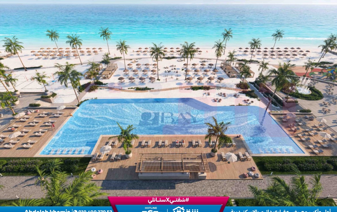 مطلات مفتوحةشاليه للبيع 115م رأس الحكمة – Q Bay (فيو بحر + على حمام السباحة مباشرة)