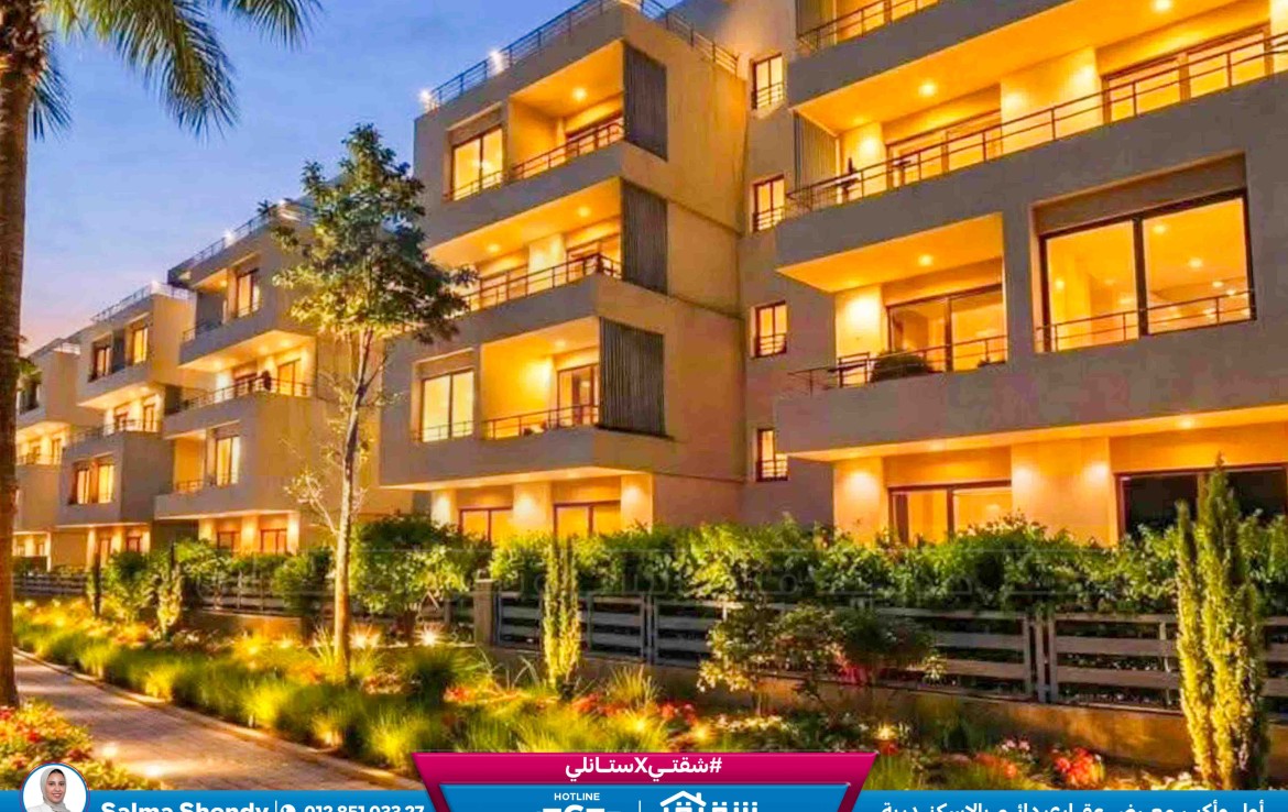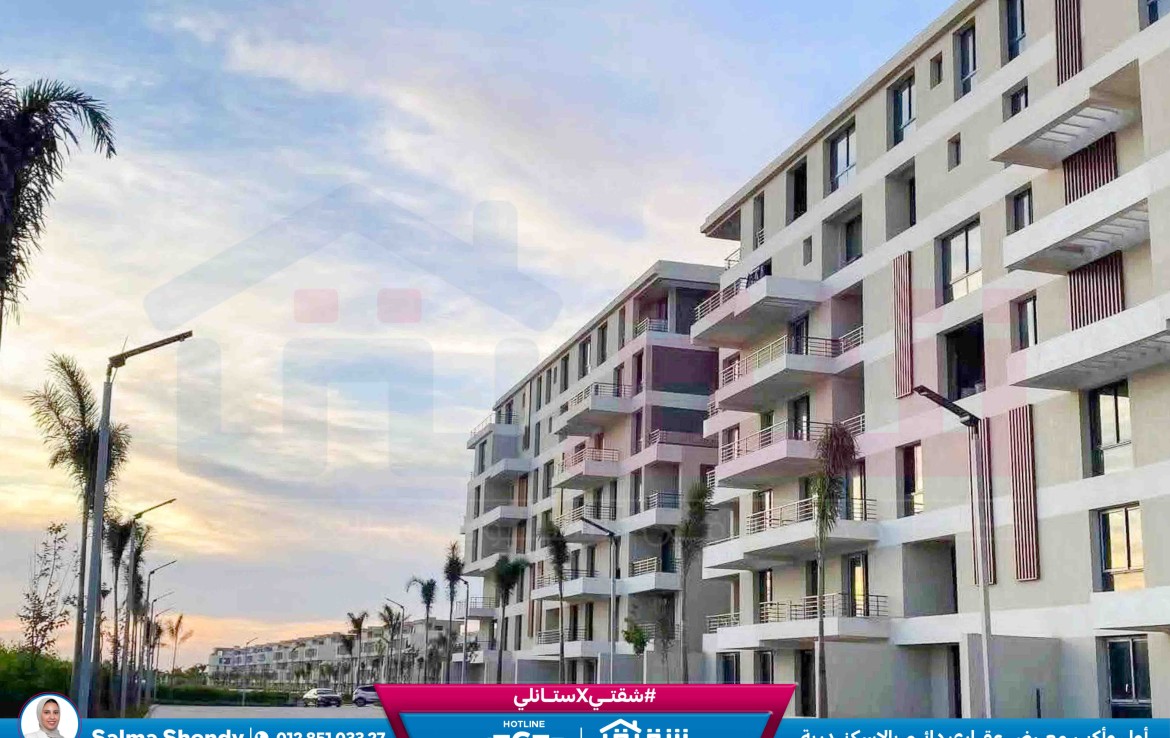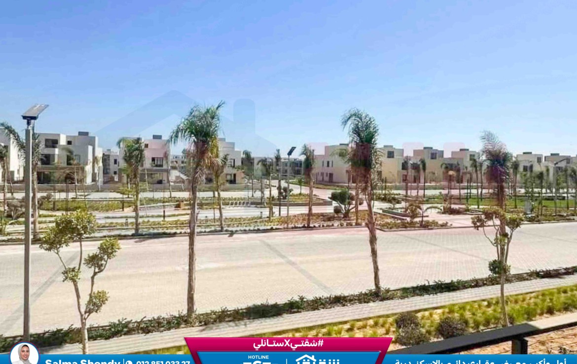 مطلات مفتوحةشقة للبيع 119م كومباوند بالم هيلز إسكندرية (فيو علي Green Spin و فلل)