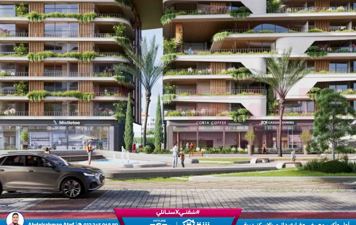مطلات مفتوحةشقة للبيع 129م سموحة – كومباوند The One (ناصية بمطلات مفتوحة بالكامل)