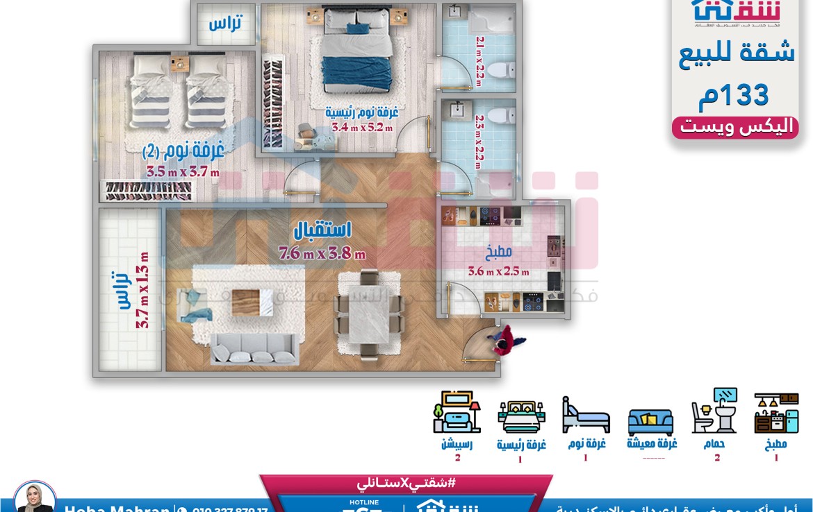 » لمزيد من التفاصيل وتحديد ميعاد للمعاينة أ/ هبة مهران: 01032787917 أو📱تواصل واتساب:https://wa.me//201032787917