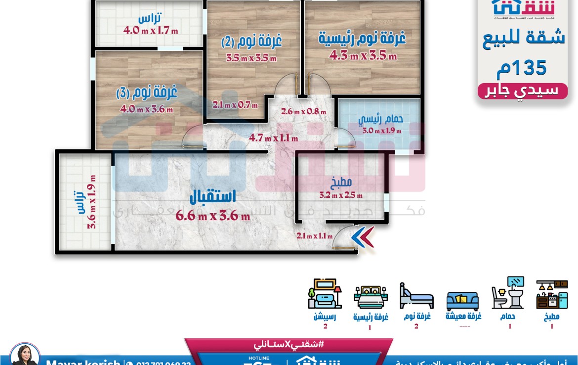 شقة للبيع 135م سيدي جابر – بحر مباشر