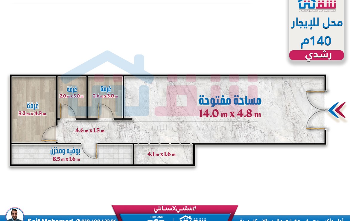 مطلات مفتوحةمحل للإيجار 140م رشدي