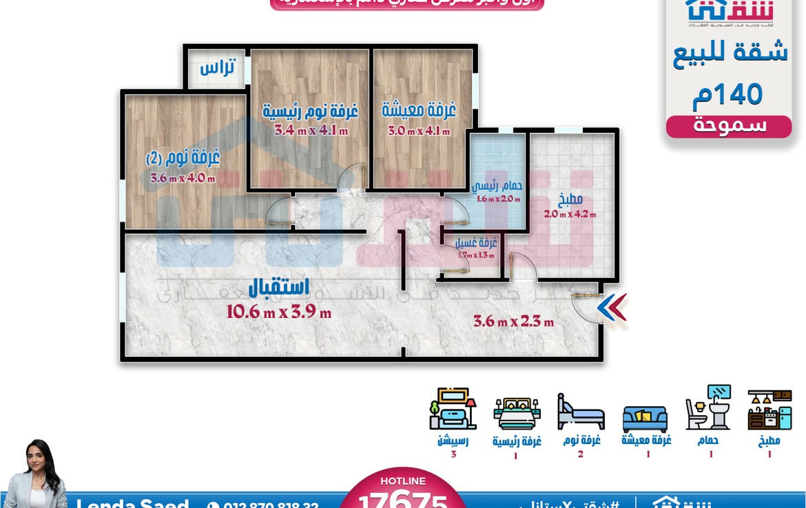 » لمزيد من التفاصيل وتحديد ميعاد للمعاينة أ/ ليندا سعيد: 01287081832 أوتواصل واتساب: https://wa.me/201287081832