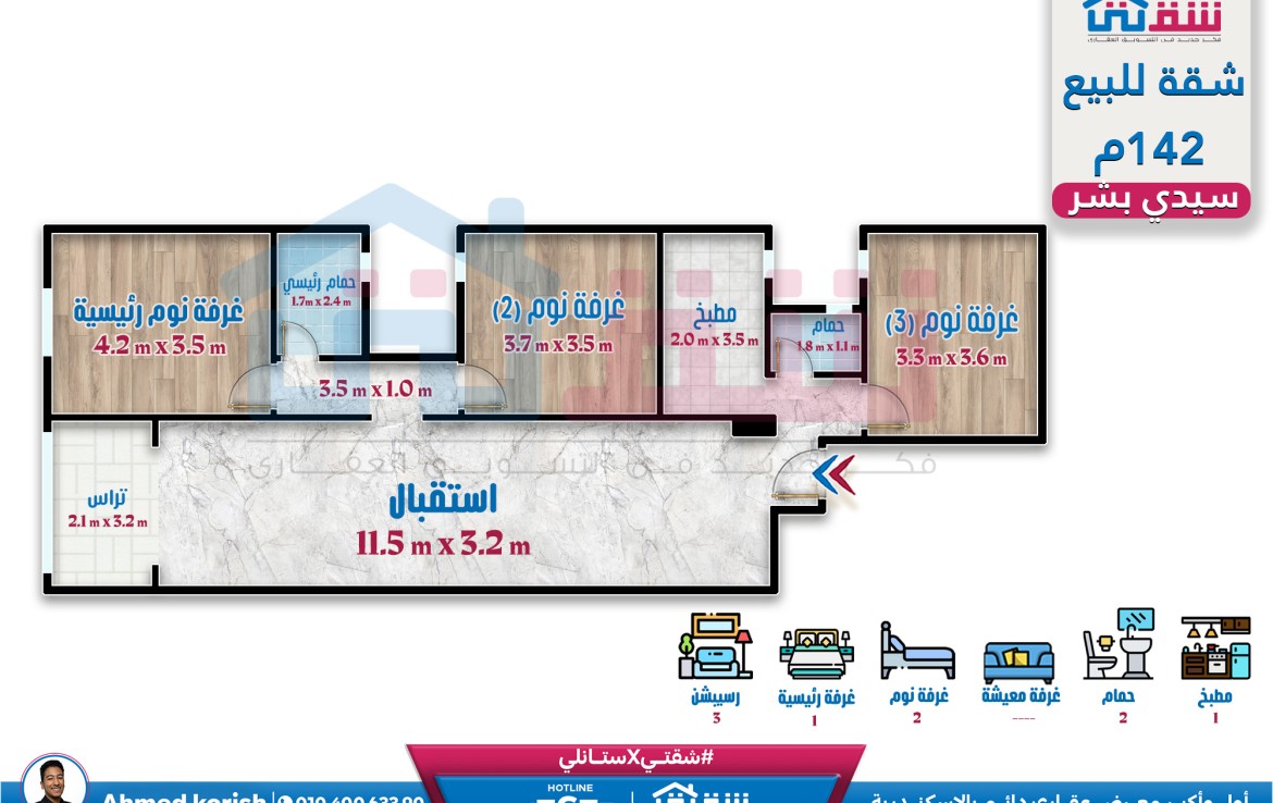 مطلات مفتوحةشقة للبيع 142م سيدي بشر – 2 نمرة من العيسوي