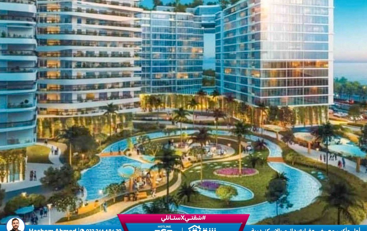 مطلات مفتوحةشقة للبيع 142م سموحة – كومباوند سكاي لاين (موقع مميز بحري صريح علي فيلات مروچ)