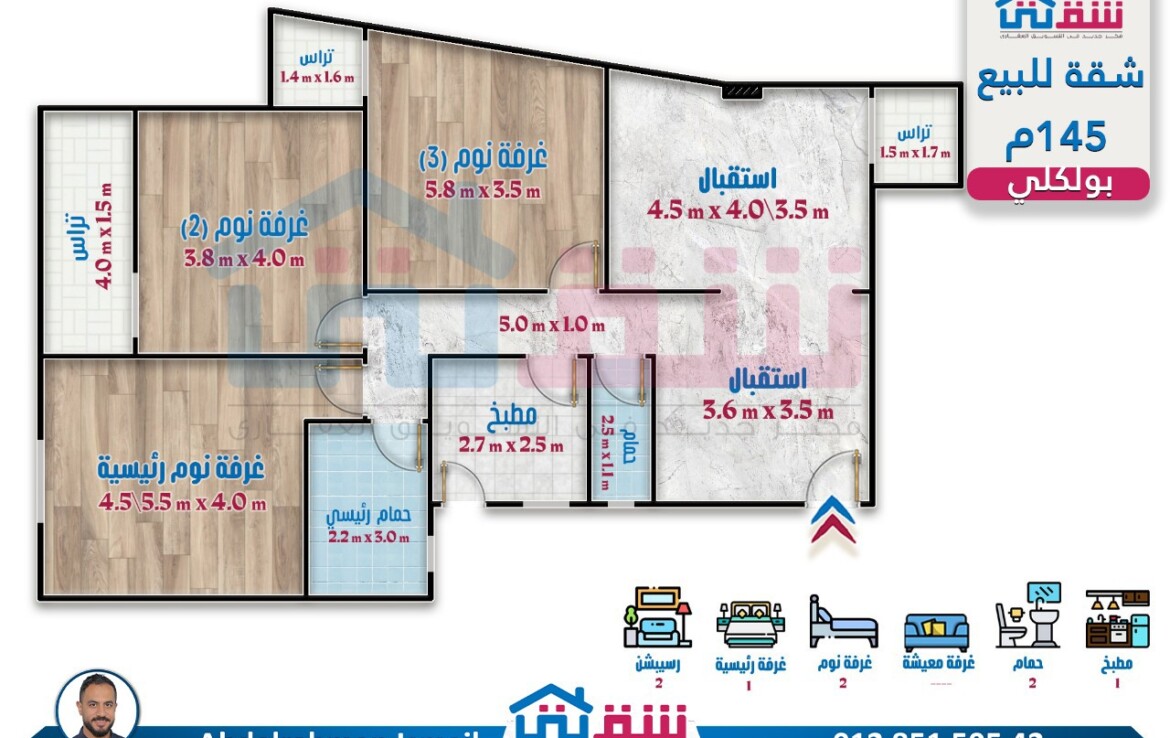 – 3 غرف ريسبشن 2 قطعة 2 حمام