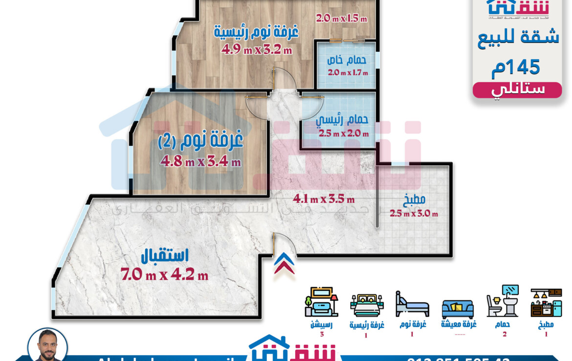 2 غرف ريسبشن 3 قطع 2 حمام مطبخ