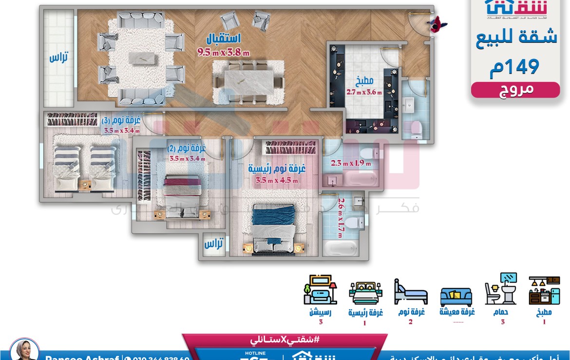 شقة للبيع 149م سموحة – كومباوند مروج