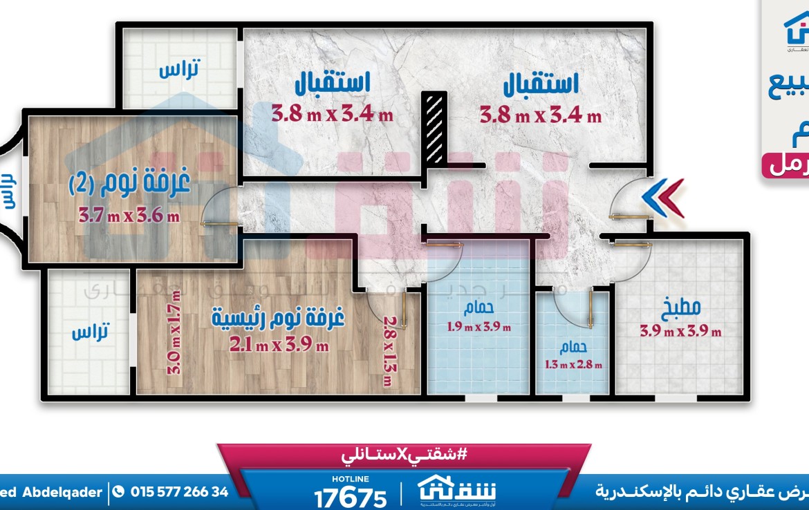 شقة للبيع 156م محطة الرمل – أبراج الشرطة (فيو مفتوح)