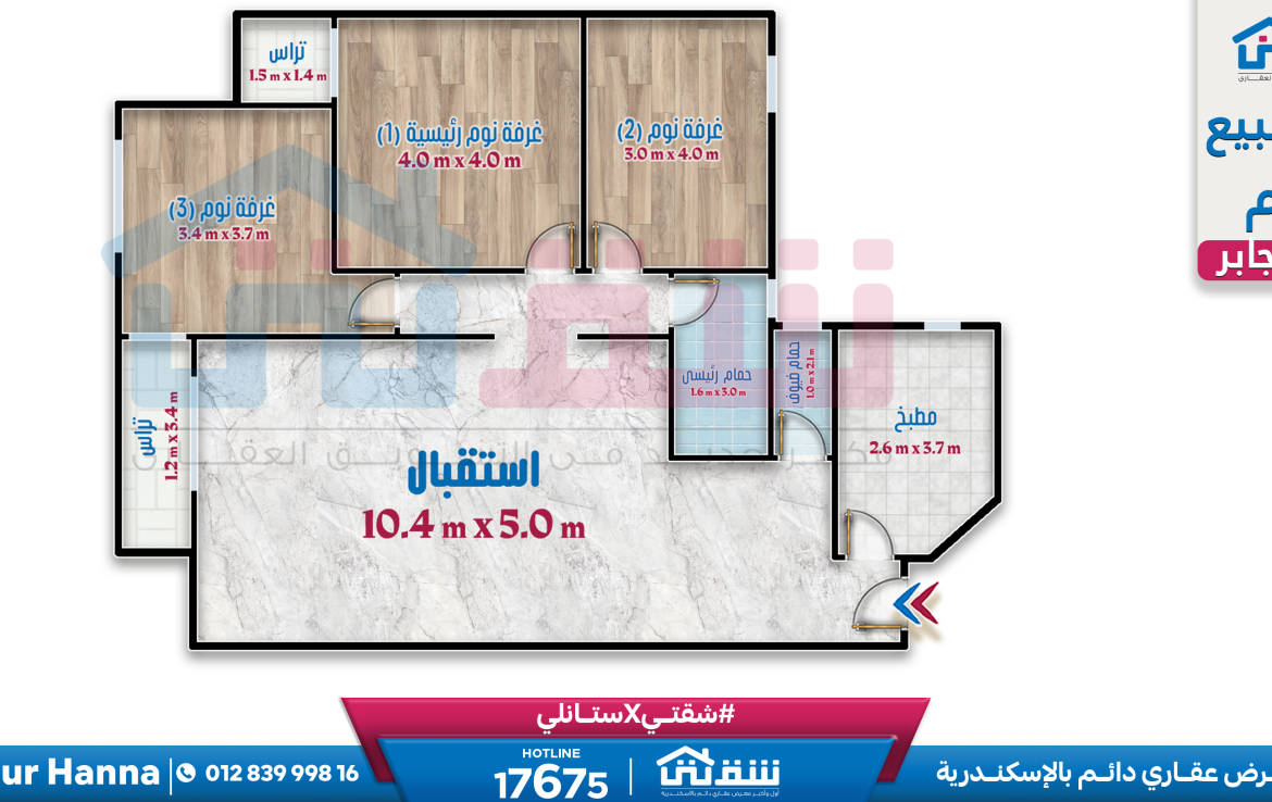 شقة للبيع 158م سيدى جابر – شارع أبو قير (فيو شارع ابو قير مباشر)