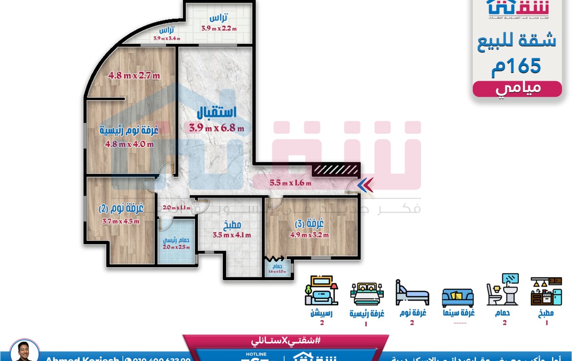 شقة للبيع 165م ميامي – ش العيسوي