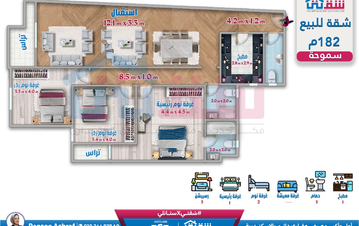 – 3 غرف ريسبشن 3 قطع 3 حمام