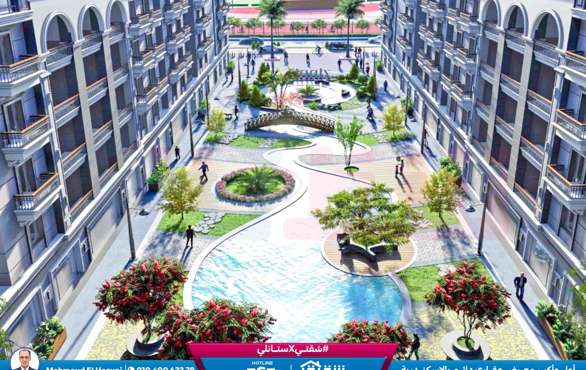 شقة للبيع 163م سموحة – كومباوند مروج (فيو مميز جدا النادي مباشر )