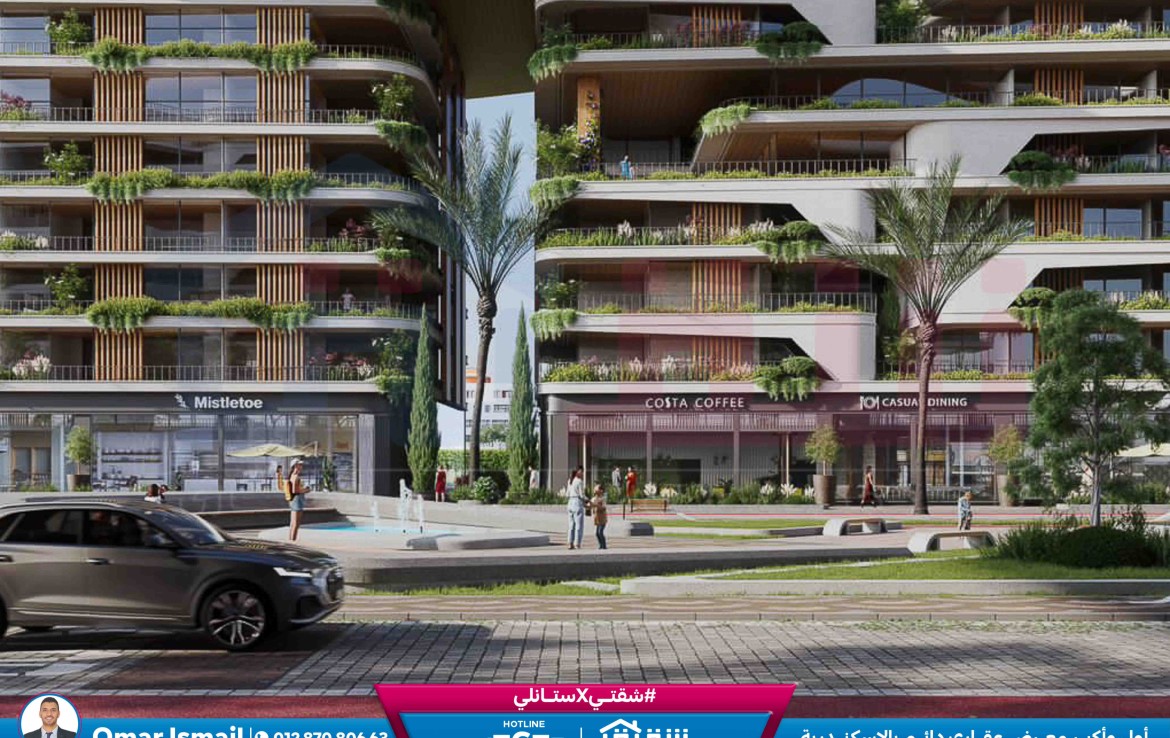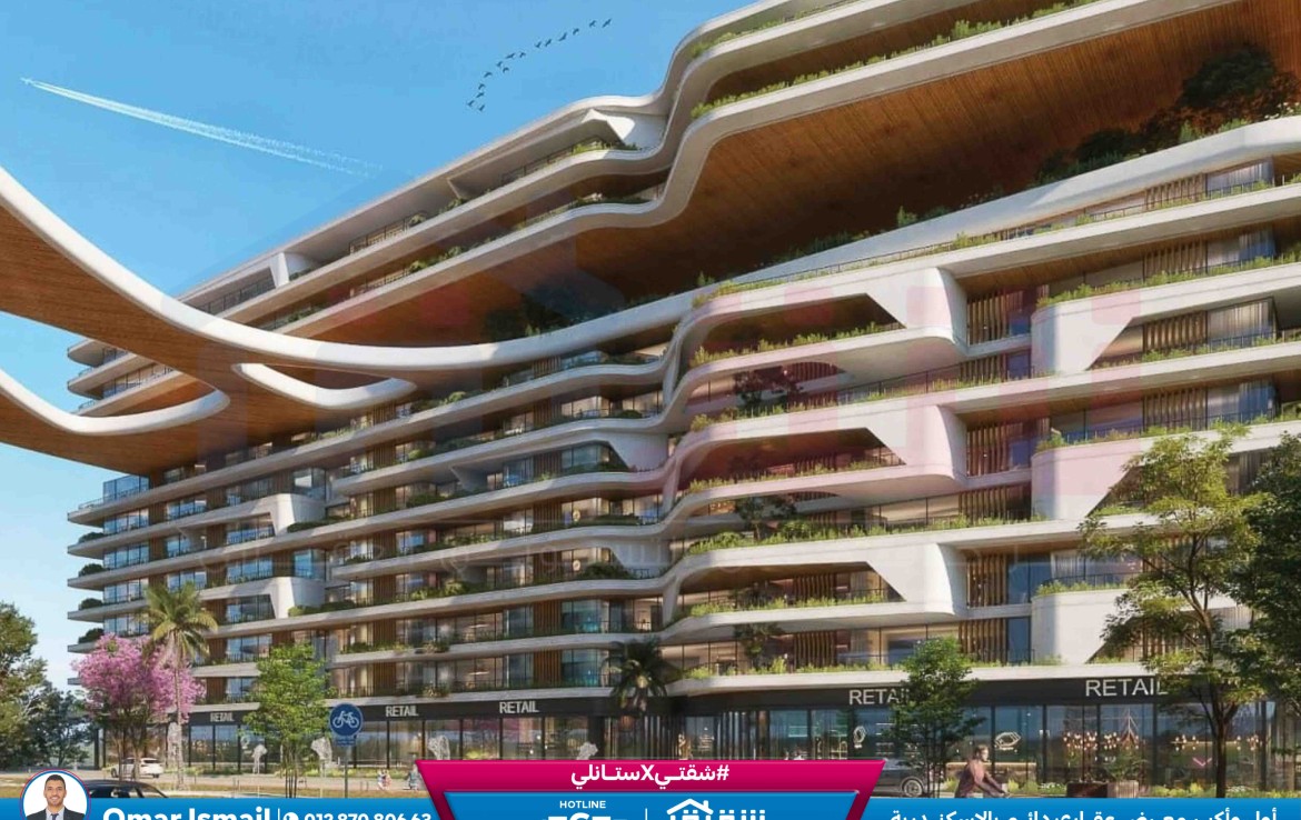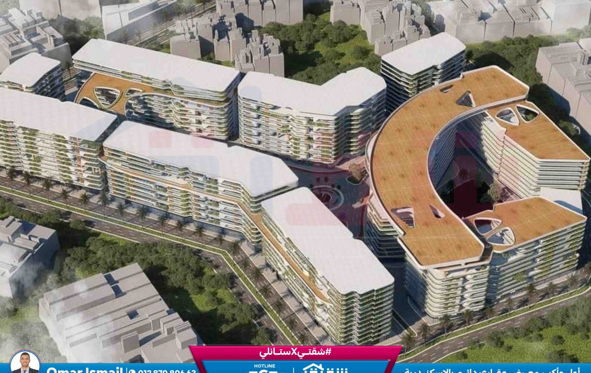 مطلات مفتوحةشقة للبيع 196م سموحة – كومباوند The One (ڤيو مفتوح علي شارع 60 م)