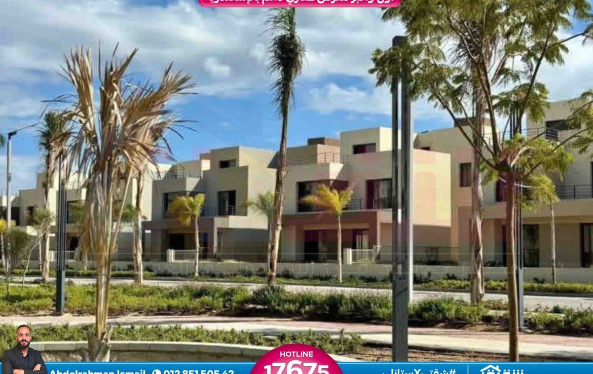 مطلات مفتوحةفيلا Town House Corner للبيع 197م مباني + 55م رووف كومباوند بالم هيلز إسكندرية