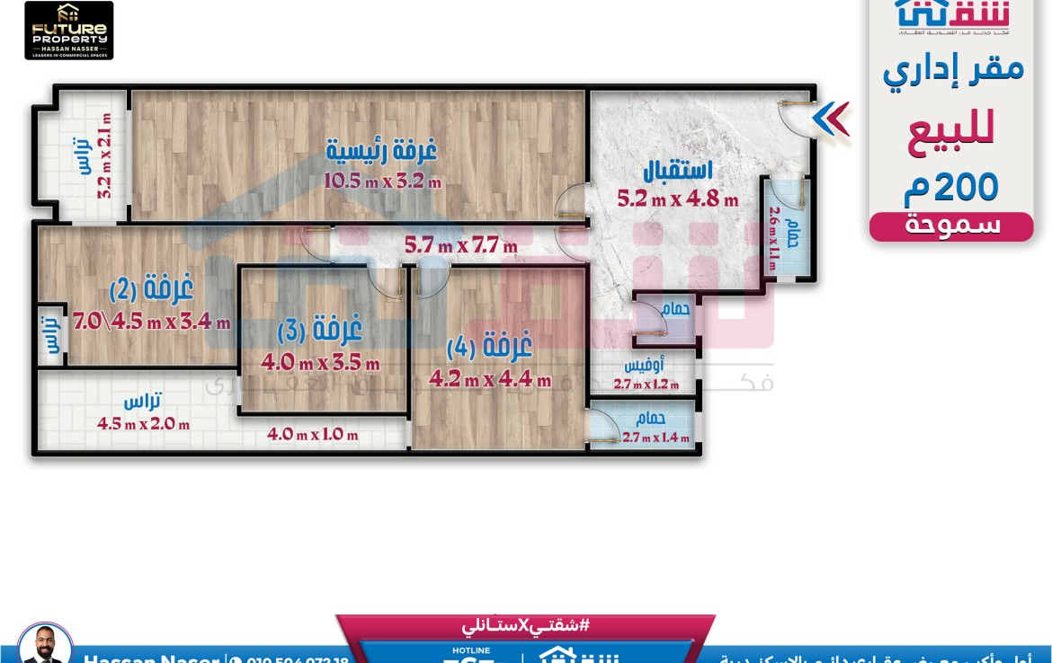 مقر إداري للبيع 200م سموحة