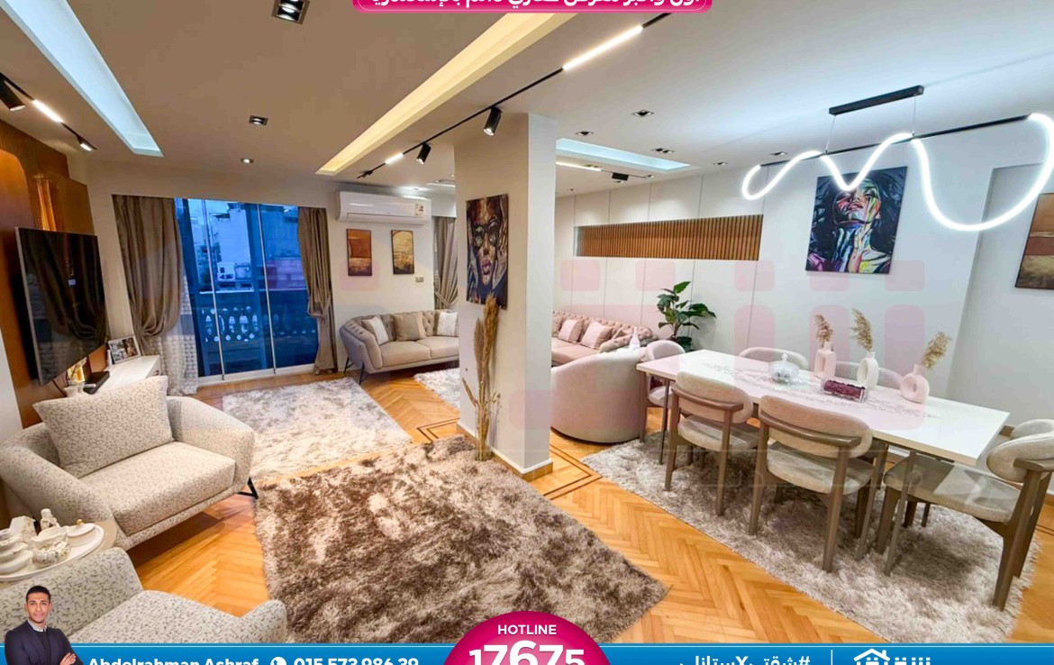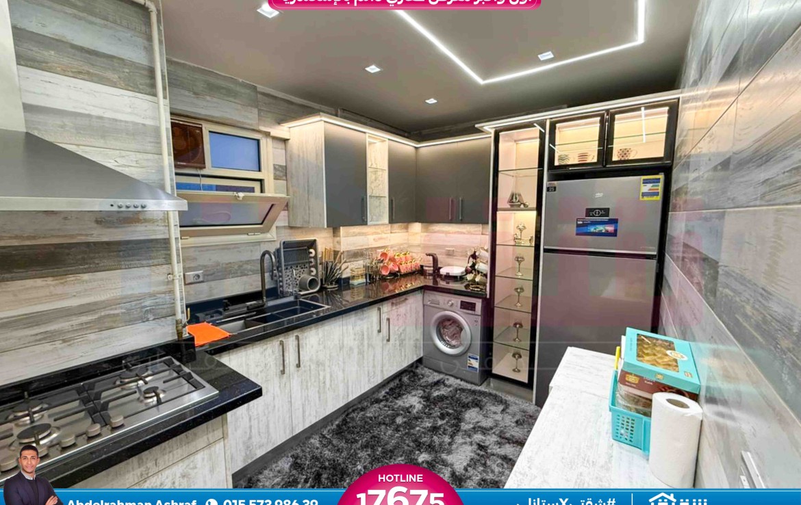 الفرش والأجهزة علي أعلي مستوي وتصميم الشقة من مكتب ديكور