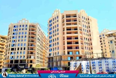 شقة للبيع 201م سموحة – كومباوند مروج ( فيو مفتوح علي ميدان 7200م – مقدم: 900,000 ج – إستلام 2025)