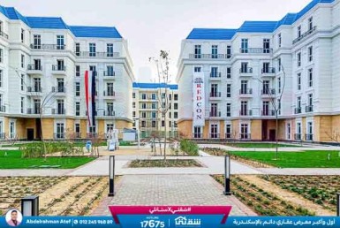 شقة للبيع 204 م سموحة – كومباوند مروج (مقدم: 900,000 ج – فيو نادي مباشرة – إستلام 2025)