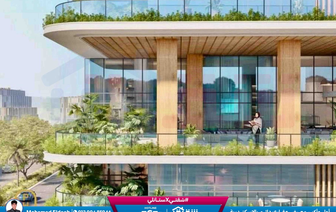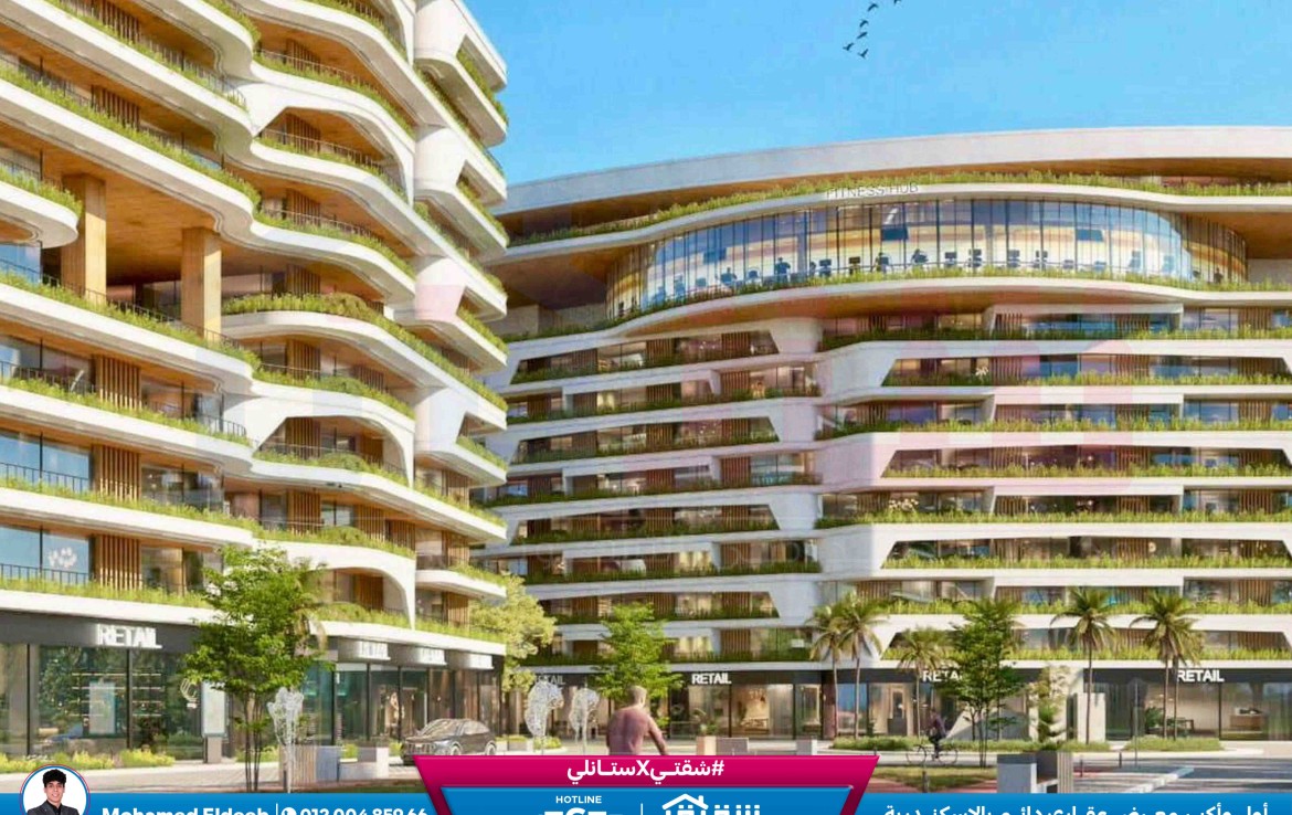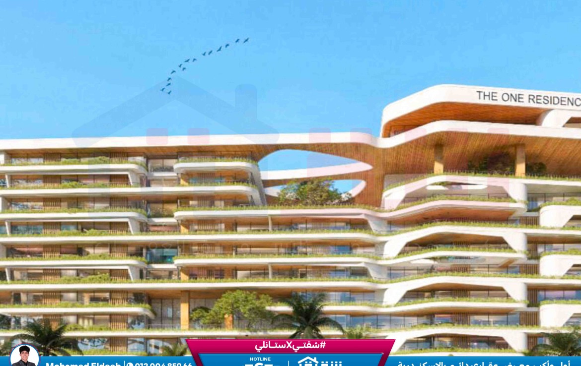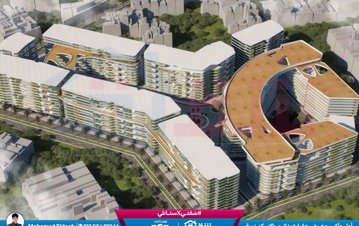 شقة للبيع 216م سموحة – كومباوند The One (ڤيو مفتوح على البلازا – مقدم 822,000 ج)