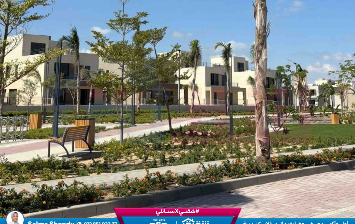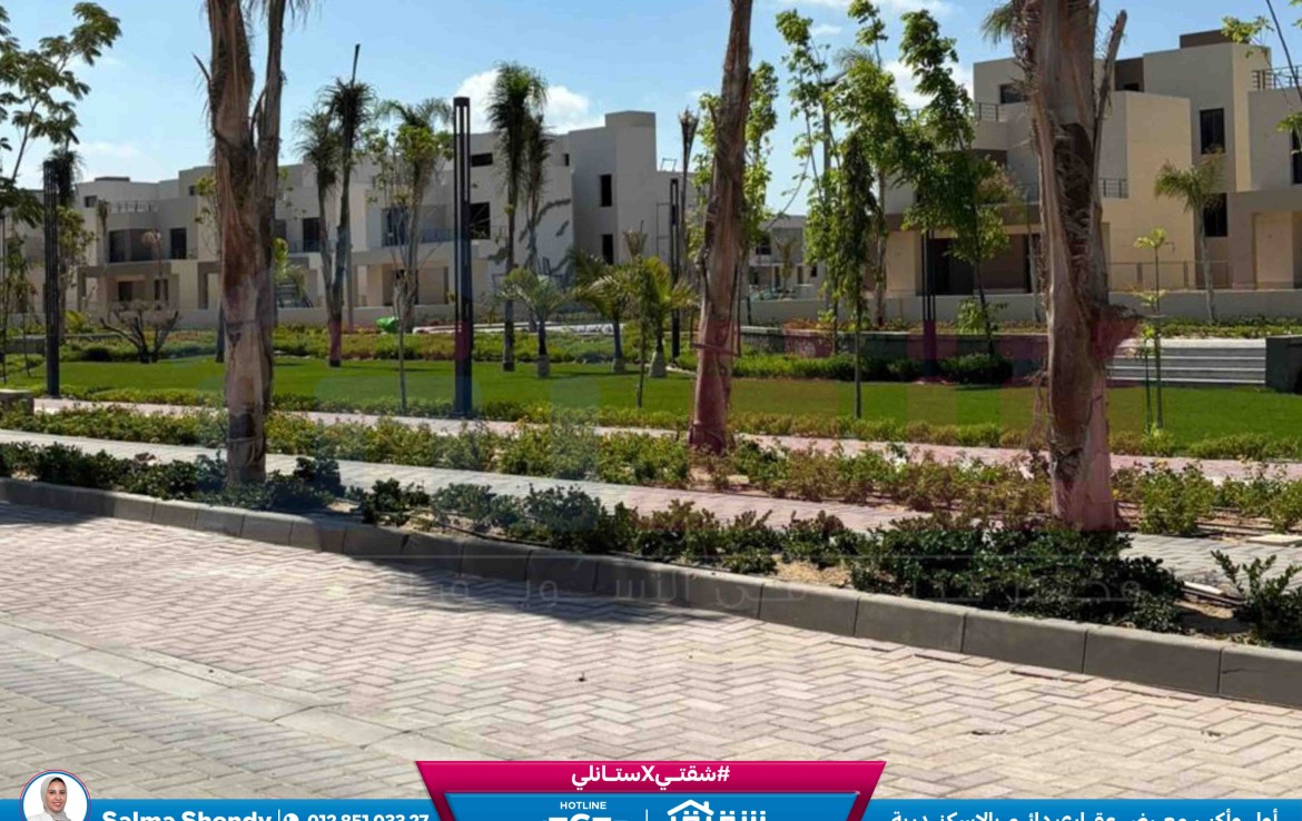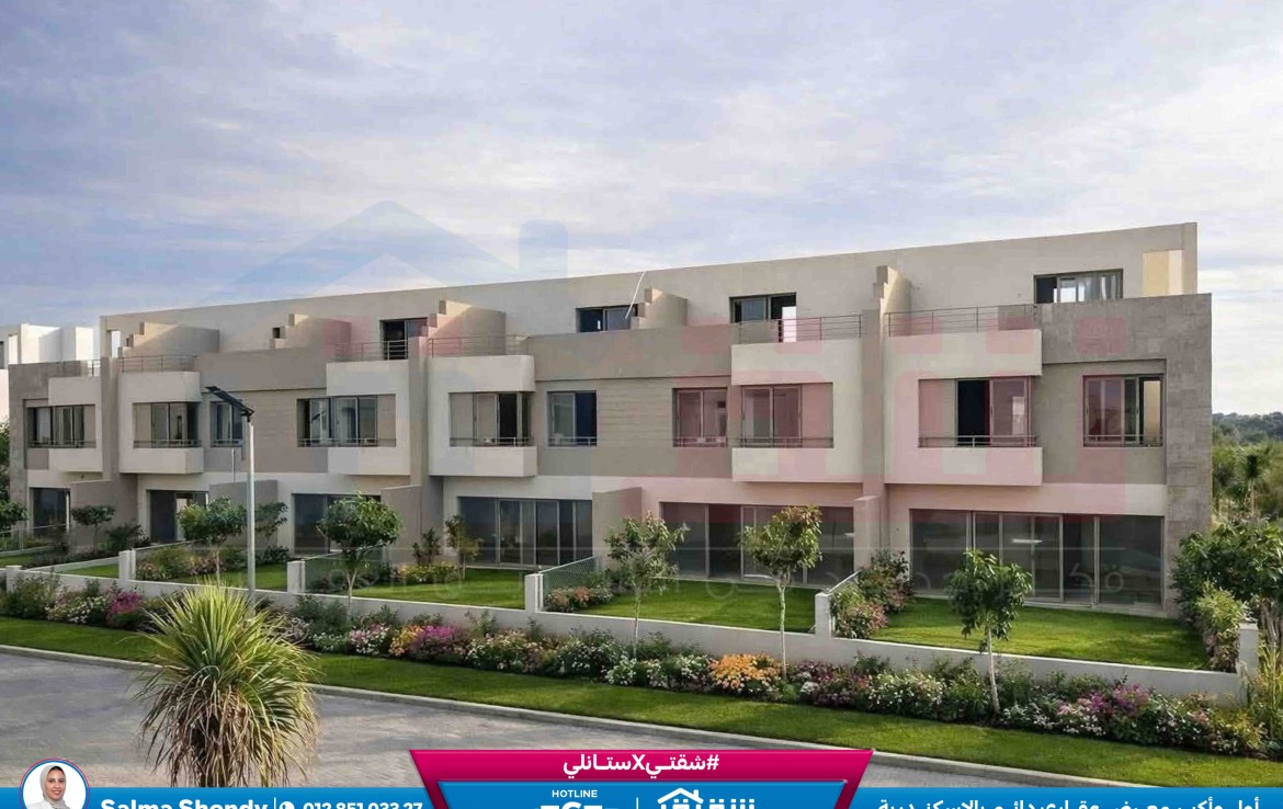مطلات مفتوحةفيلا Town House للبيع 220م مباني + 212 م أرض كومباوند بالم هيلز إسكندرية (Prime Location)