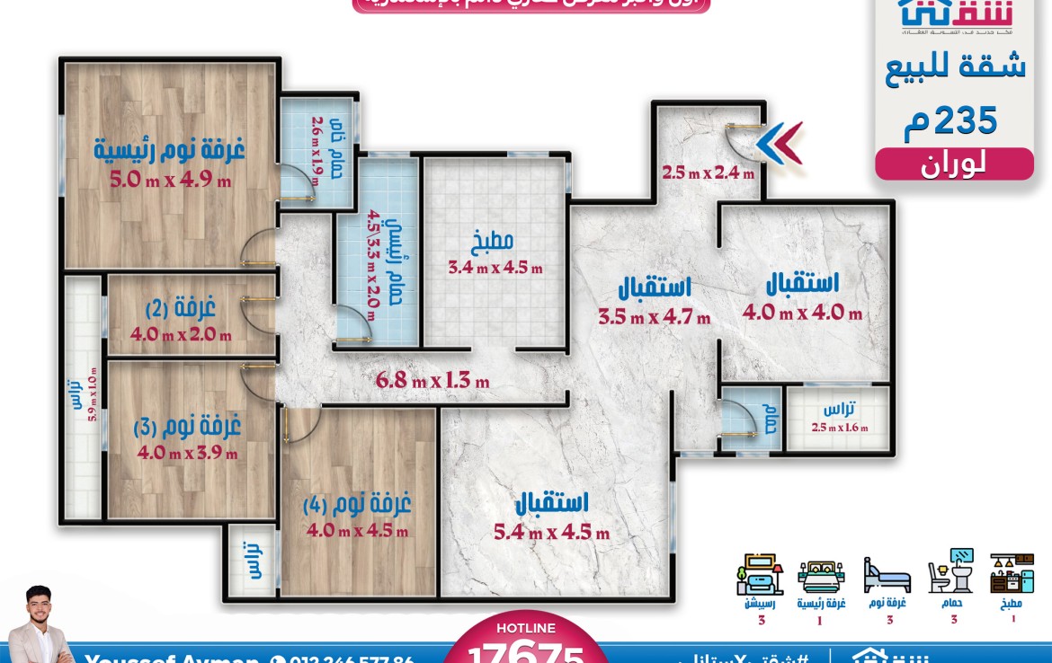 شقة للبيع 235م لوران – ش شعراوي الرئيسي