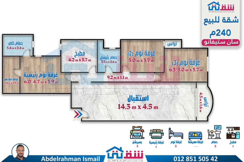 شقة للبيع 240م سان ستيفانو