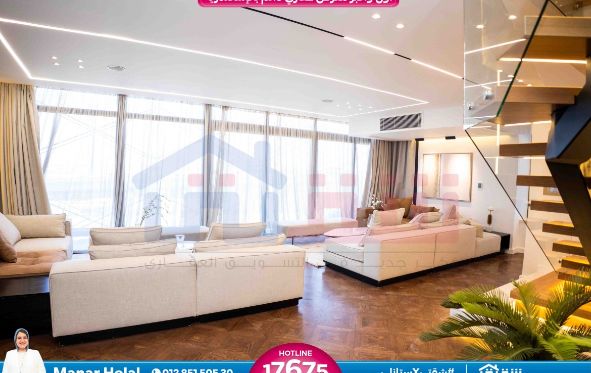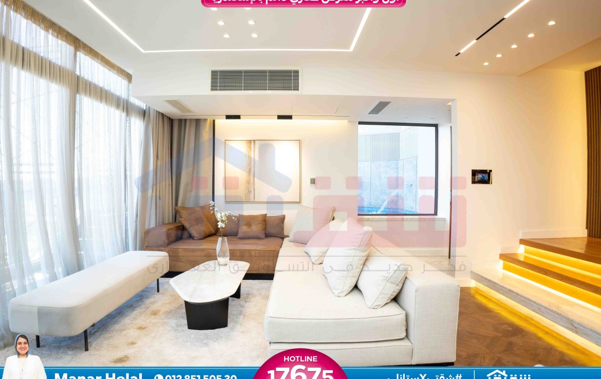 مطلات مفتوحةسكاي فيلا Resale للبيع 330م سموحة – كومباوند سكاي لاين (فيو بحيرة و نادي الإتحاد)