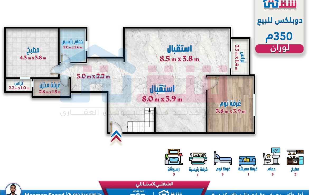 دوبلكس للبيع 350م لوران – على الترام مباشرة (جميع المطلات مفتوحة)