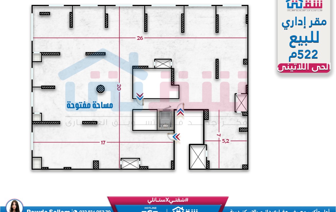مقر إداري للبيع 522م الحي اللاتيني – بين ش فؤاد و السلطان حسين (فيو مفتوح)