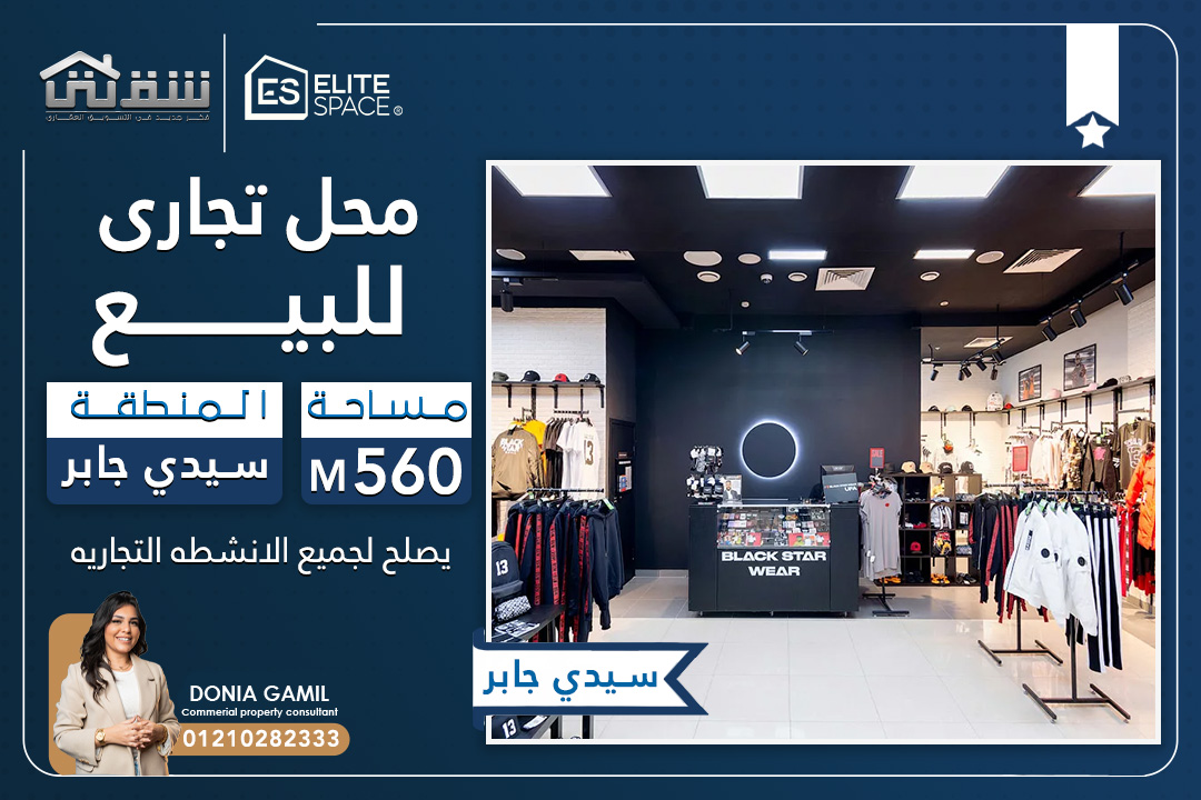 محل تجاري للبيع 560م سيدي جابر (شارع رئيسي – ناصية بواجهة 20م)