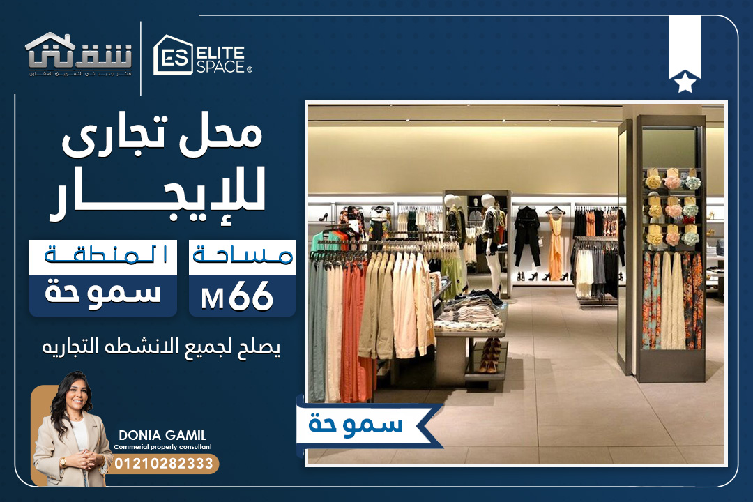 محل تجاري للإيجار 66م سموحة – ش بهاء الدين الغتوري