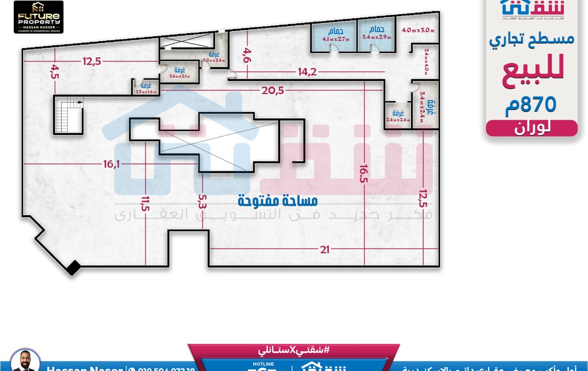 مسطح تجاري للبيع 870م لوران