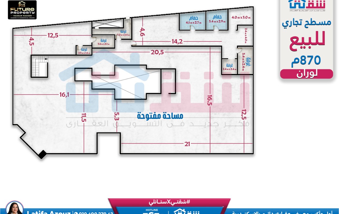 مطلات مفتوحةمسطح تجاري للبيع 870م لوران
