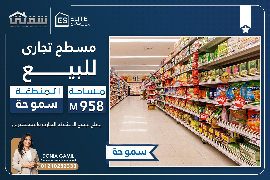 مسطح تجاري للبيع 958م سموحة – شارع فوزي معاذ الرئيسي (مرخص تجاري)